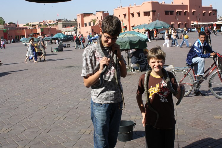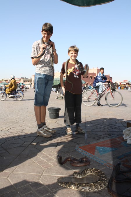 in der Stadtmitte z.B. auf dem Djema el Fna, der sich abends